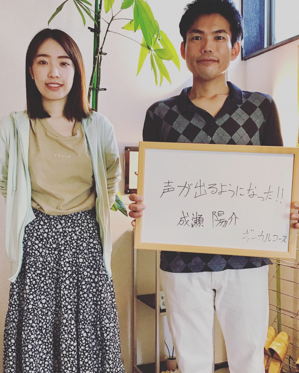 声が出るようになってきた成瀬さん!2019/06/08 土曜日の音痴矯正&ボーカルコースへ通われている成瀬さん。 *左の方は担当のエリ先生。 当初は声が思うように出なかったり、音程が取れなかったようですが、最近は徐々に出来るようになってきました! 今の現状に満足してない成瀬さん「まだまだ!」「まだまだ!」と向上心あるお言葉がとても印象的でした。 成瀬さん、今後も応援していますので頑張って下さい♬ ◯➖➖➖➖➖➖➖➖➖➖➖➖➖➖◯ 令和元年のわくわく入会金無料キャンペーン開催中! キャンペーン期間: 6月1日〜6月30日 <先着限定3名様のみ> 特典1 入会金10,800円がなんと ↓ 0円 ◯➖➖➖➖➖➖➖➖➖➖➖➖➖➖◯ ★土曜日ボイストレーニング&音痴矯正コースの無料体験レッスンにご興味のある方は0566-76-0755まで参加希望でご連絡下さい! ◎歌にコンプレックスのある方! ◎ビジネスの場などで「声で損をしている」と感じる方! ◎カラオケ仲間より上手く歌いた方! ◎初心者大歓迎!!! ◎音程が取れない方 体験レッスン(見学だけでもOK!)とは ・どんな先生なのかな~? ・どんなレッスンをするのかな~? ・楽しいかな~できるかな~? そんな不安や疑問を解決するのが体験レッスンです! お気軽にご参加ください♫ <お問い合わせ> 〒446-0033 愛知県安城市日の出町9-13 ヒロビル3F4F TEL:0566-76-0755 HP:http://www.crospport.com/ インスタ:https://www.instagram.com/crospport Twitter:http://twitter.com/crospport Facebook:https://m.facebook.com/crospport/ e-mail:info@crospport.com *e-mailは24時間受付可能