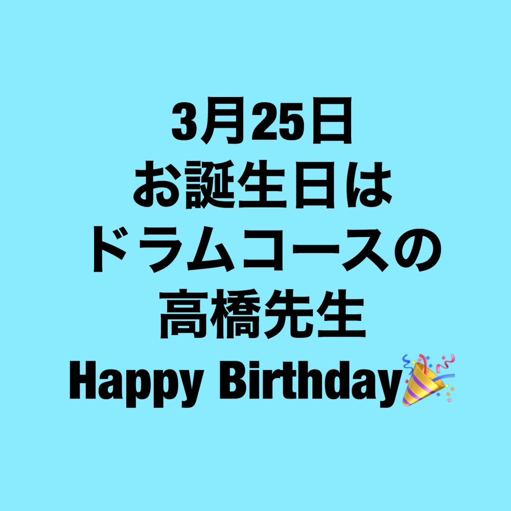 3月25日お誕生日の先生は?2020/03/26 本日、3月25日お誕生日はドラムコースの高橋先生