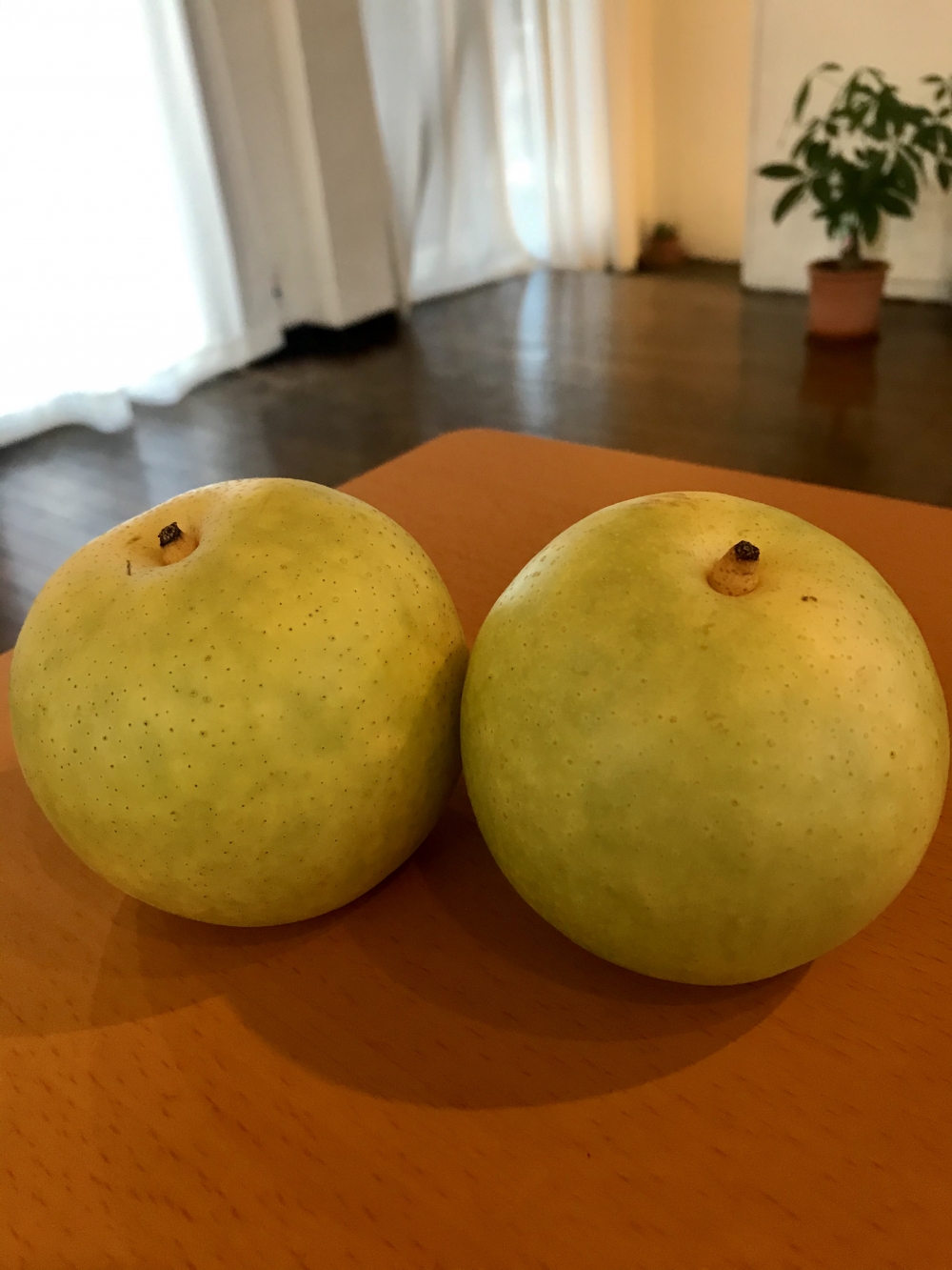 いつもの様にオフィスへ来られると、お婆さまから梨をいただいたと、私にもおいしそうな梨をくださりましたぁ🍐🍐