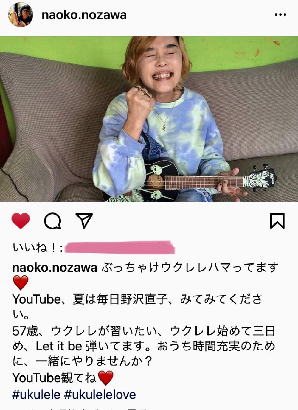 野沢直子さんもハマるウクレレ!