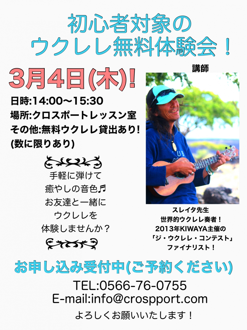 ウクレレにご興味のある方、新しいご趣味を探している方など、お気軽にご参加下さい♬
