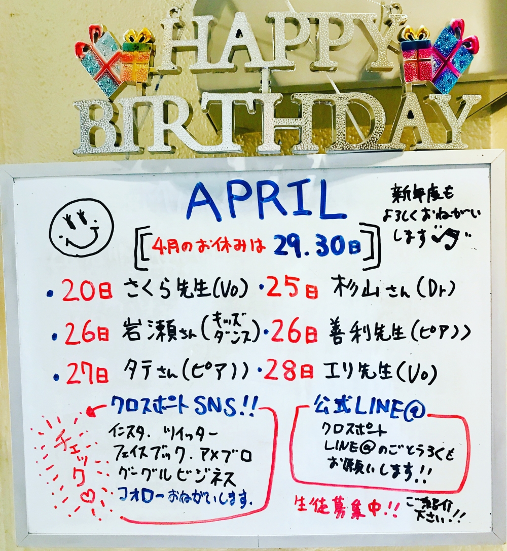 <4月生まれの生徒さんと講師のご紹介>