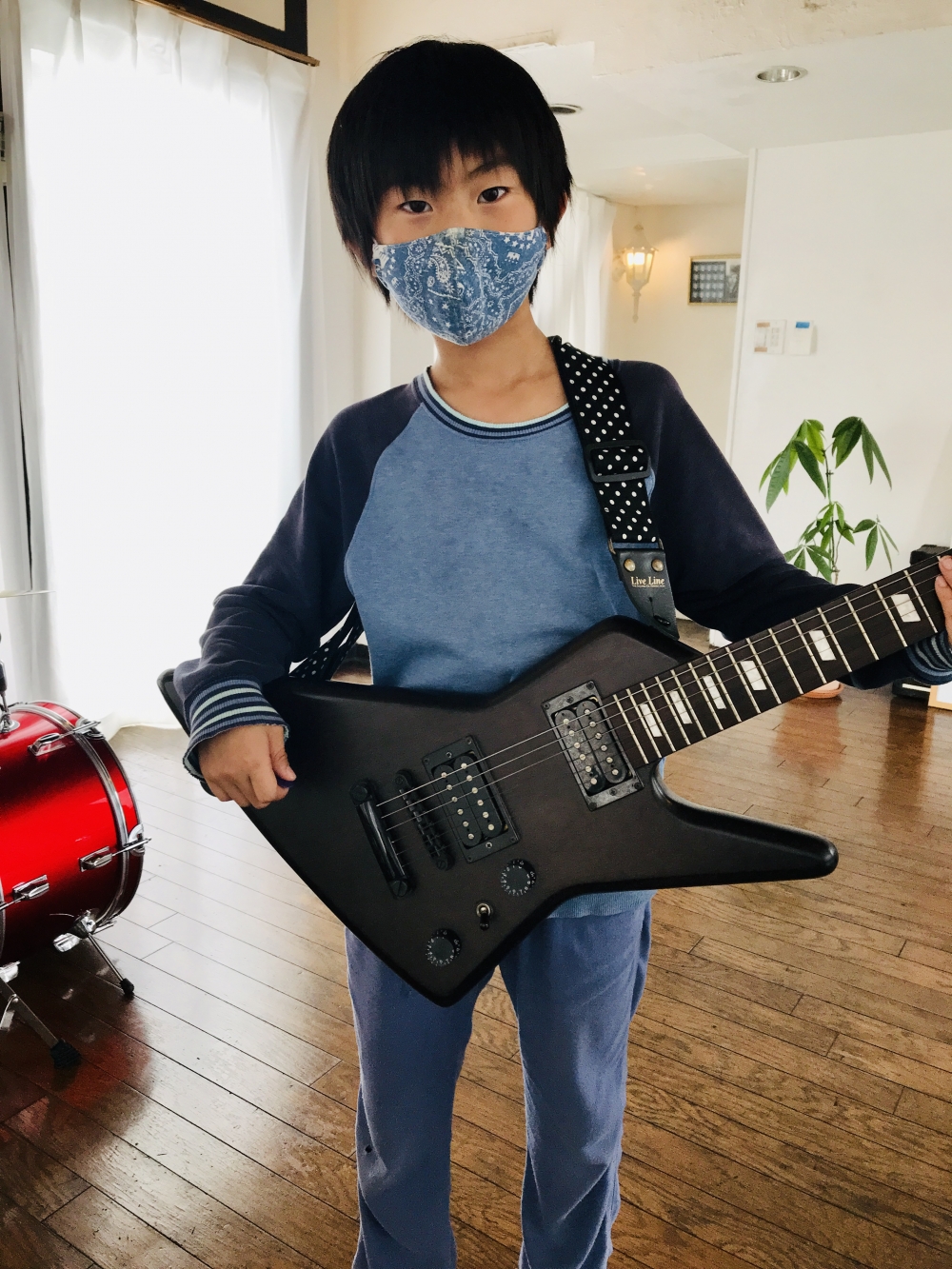 ギターコースに通ってる小学生ギターリストのケイスケさん。