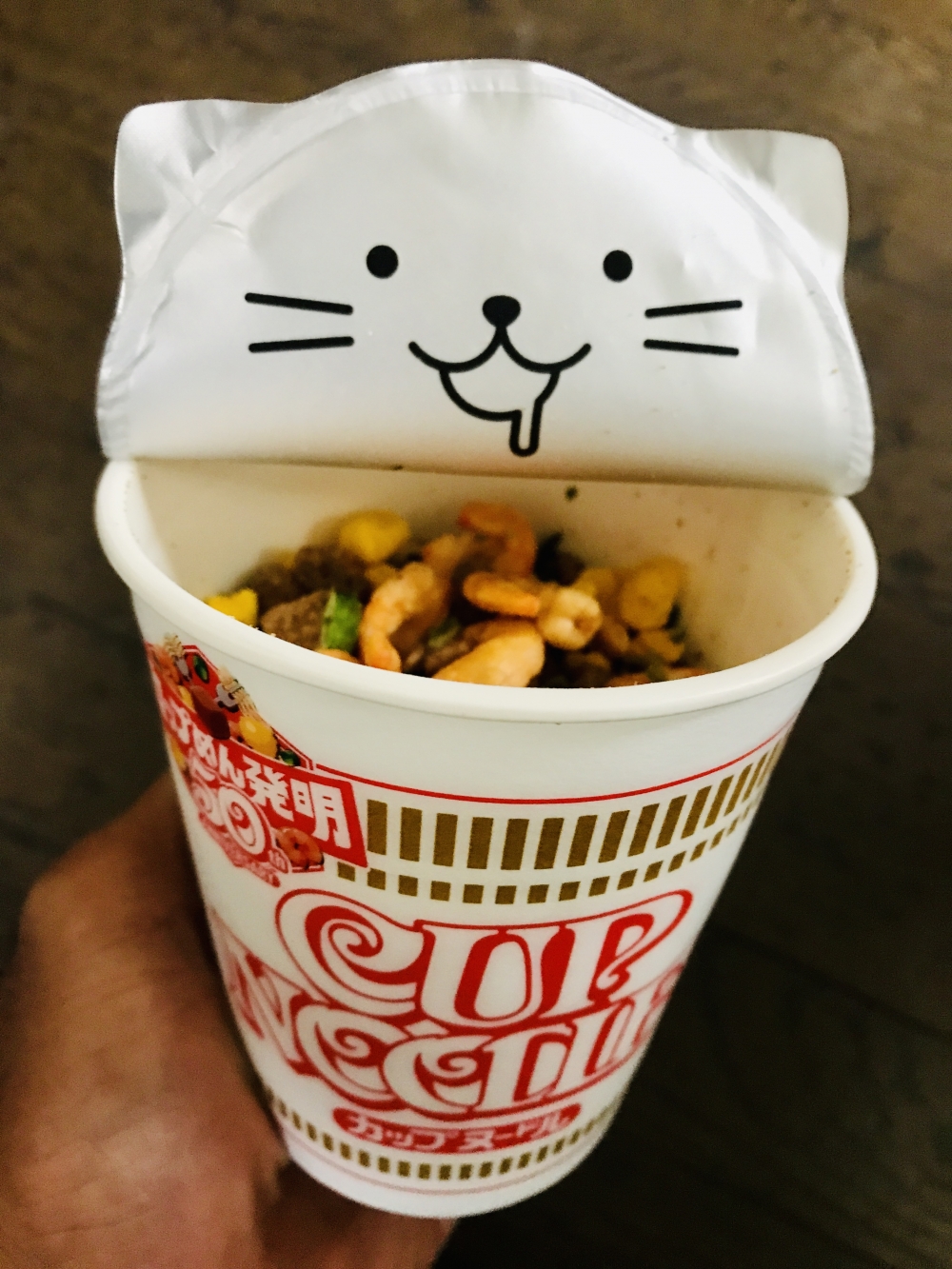 以前食べたカップヌードルのフタを開けたらネコだったのが可愛くて写メ撮ってたのを思い出しました!
