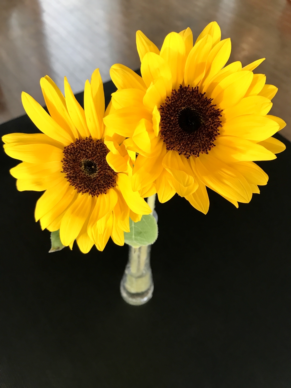 たった2本のひまわりでも、その場の雰囲気がパッと明るくなる感じがします😊