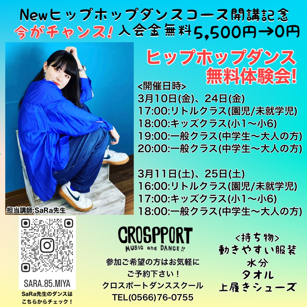 春からの習い事スタートにグッドタイミングのこの時期に、皆んなで楽しくダンスしましょう。お気軽にご参加下さい!