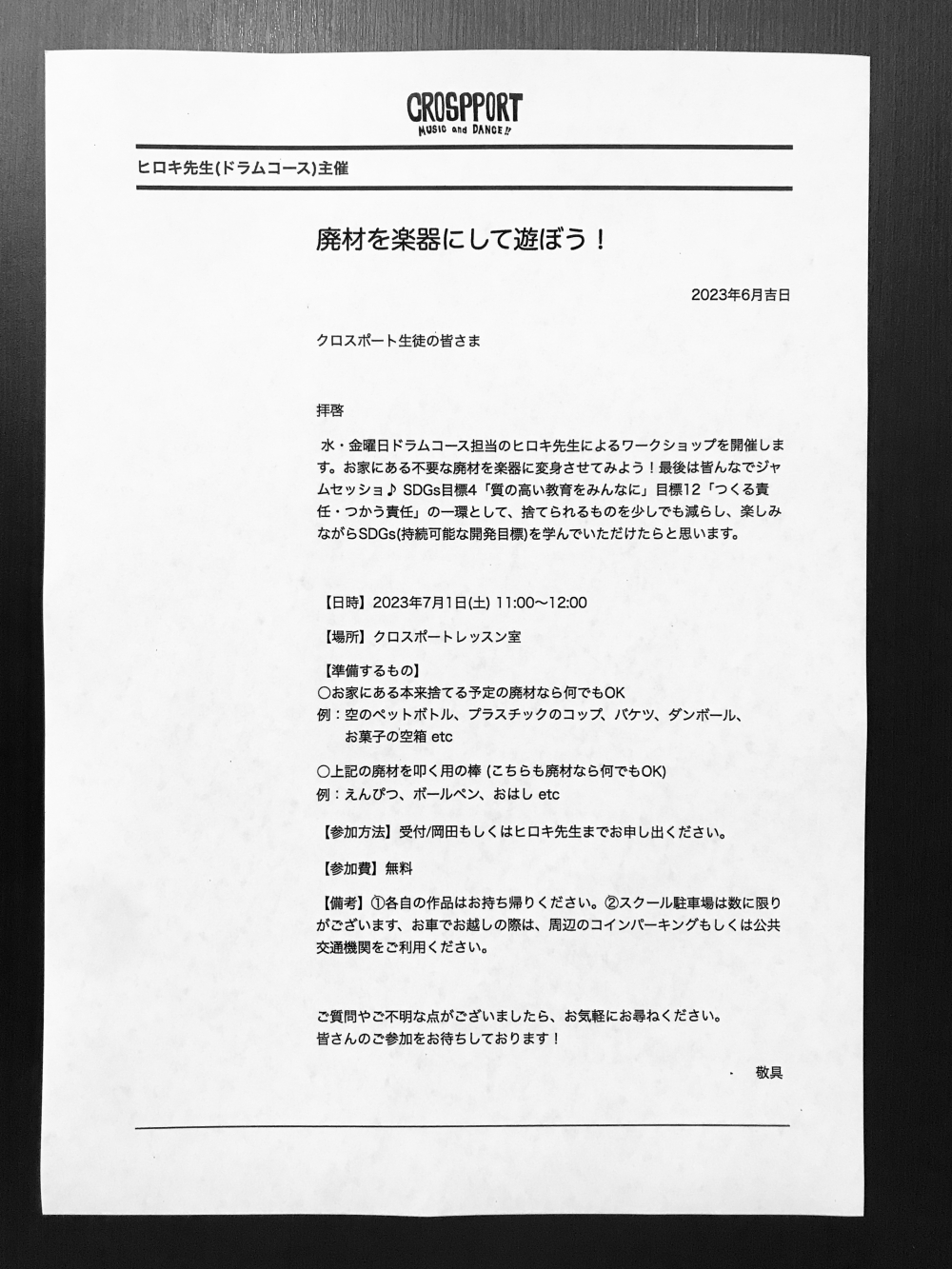 もしご年齢を気にされて楽器やダンスへの挑戦に悩んでる方や一歩が踏み出せない方は、ご遠慮なく是非クロスポートへお越し下さい。