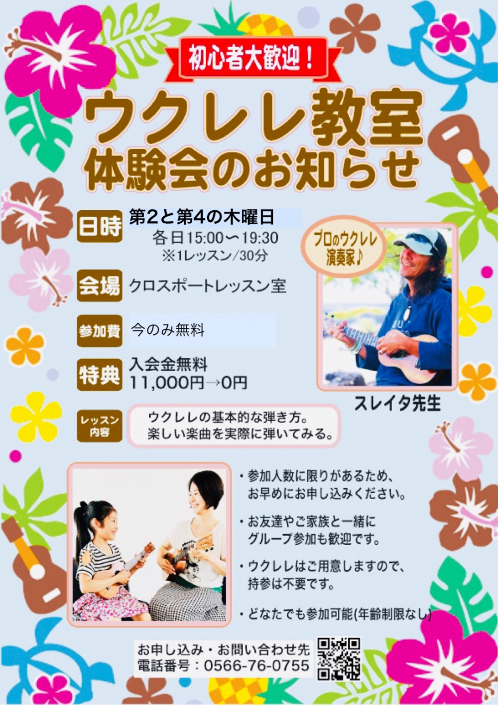 ウクレレ無料体験レッスンのご予約は(0566)-76-0755まで