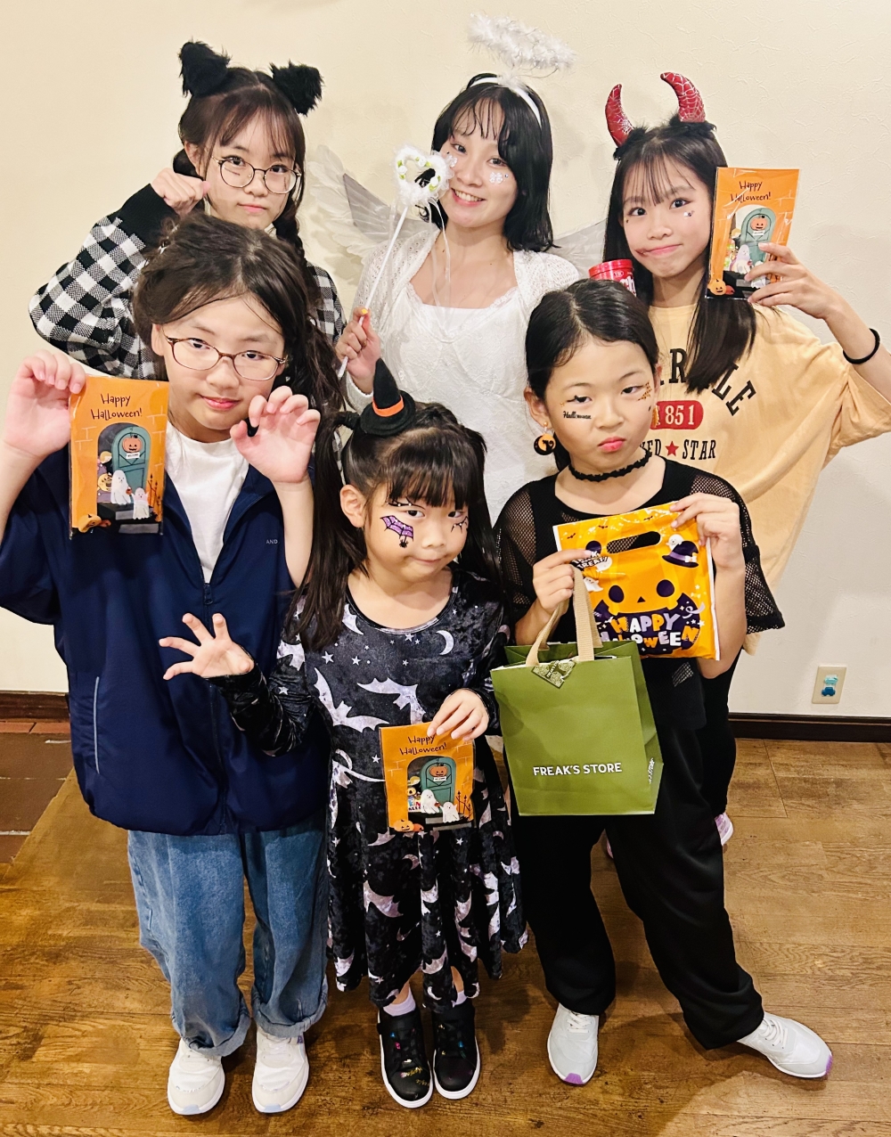 レッスン後の集合写真は、ハロウィンの思い出にぴったりの一枚!いつものレッスンとはまた違った楽しい一日でしたね♪
