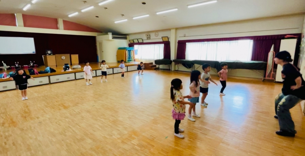 前回の振付けの復習に加え、新しい振付けにもチャレンジしました。初めての動きにも果敢に取り組む姿がとても印象的で、元気いっぱいな子どもたちのエネルギーが教室中に広がっていました。