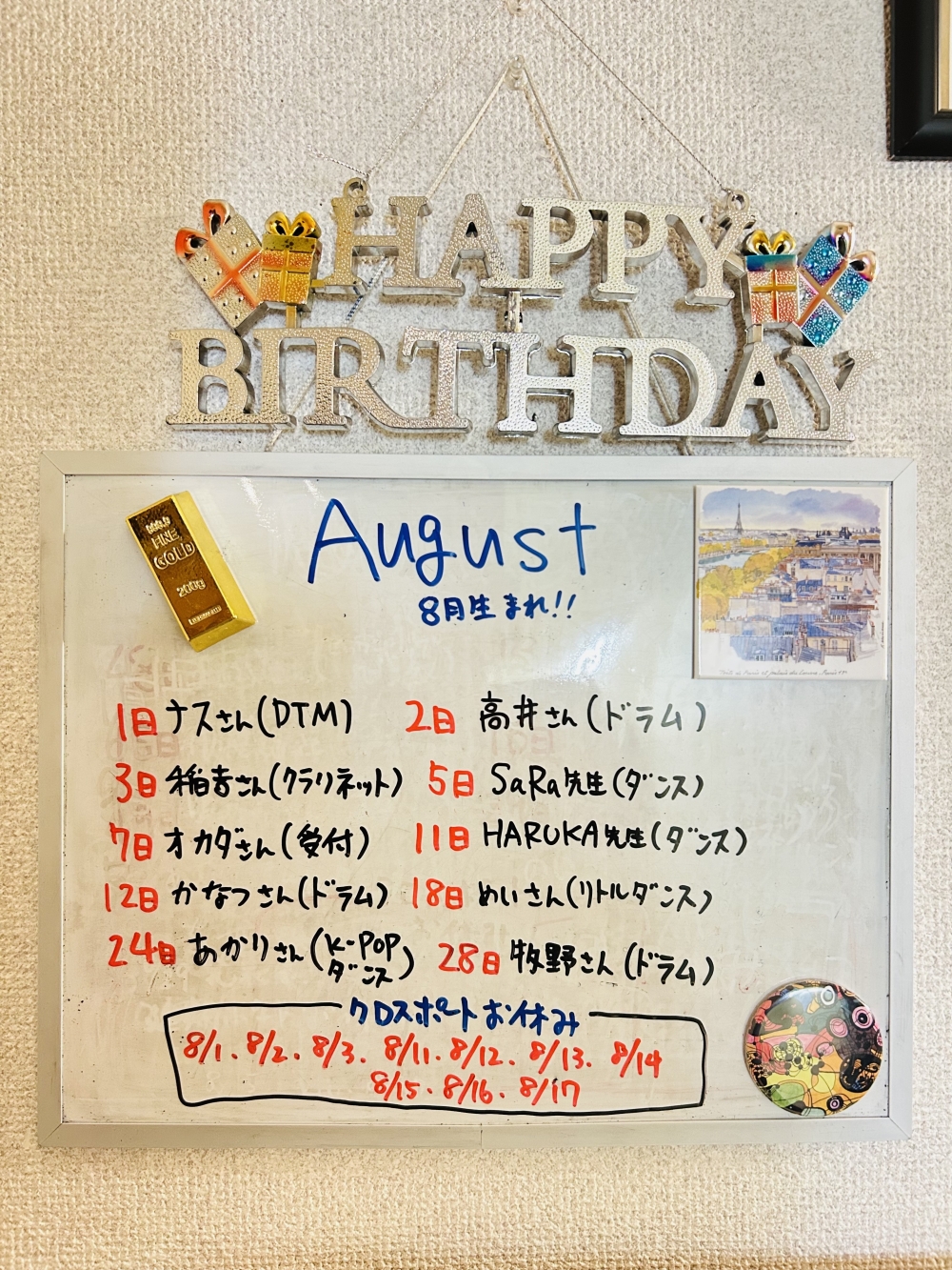 8月お誕生日の皆さんハッピーバースデー!